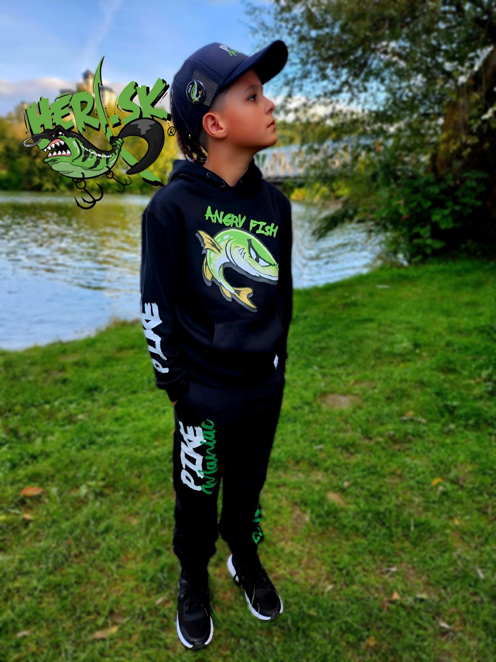 Mikina je navržena tak, aby perfektně ladila s tepláky a tričkem PIKE MANIAC – vytváří tak unikátní dětskou rybářskou soupravu.