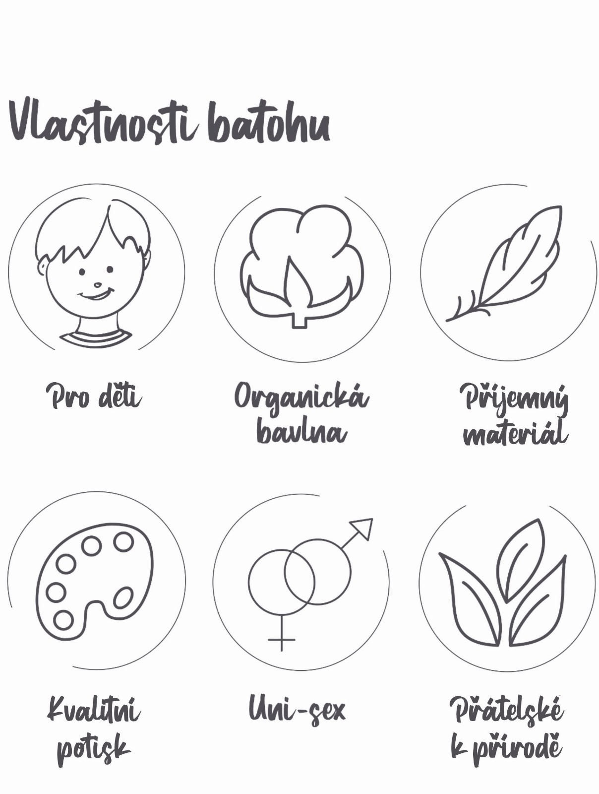 🖤 Černý design s bavlněnými šňůrkami v barvě motivu mu dodává výrazný, ale zároveň čistý vzhled.