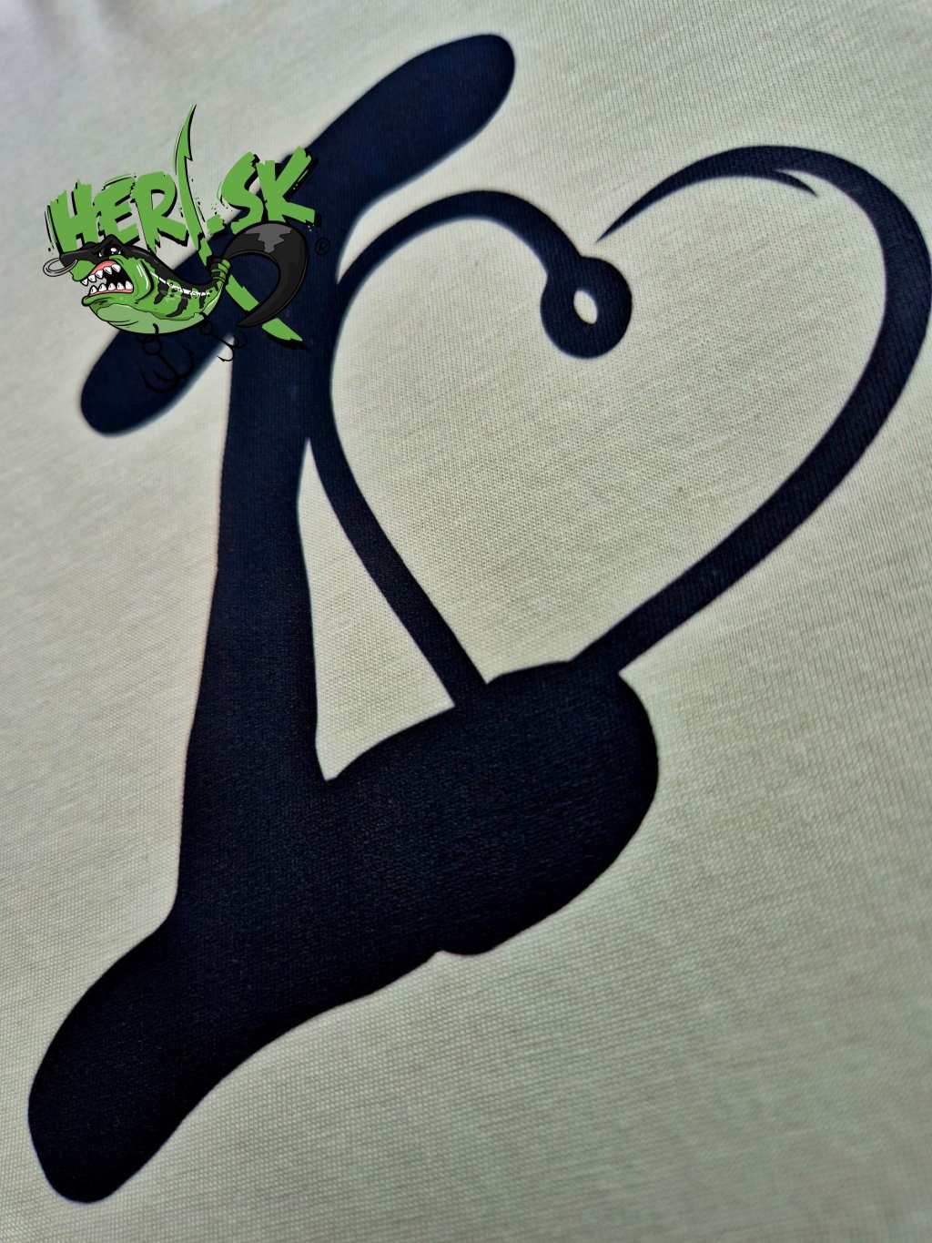 ✔️ Vepředu nápis I ❤️ – srdce ve tvaru rybářského háčku, které chytne každého fanouška rybařiny
