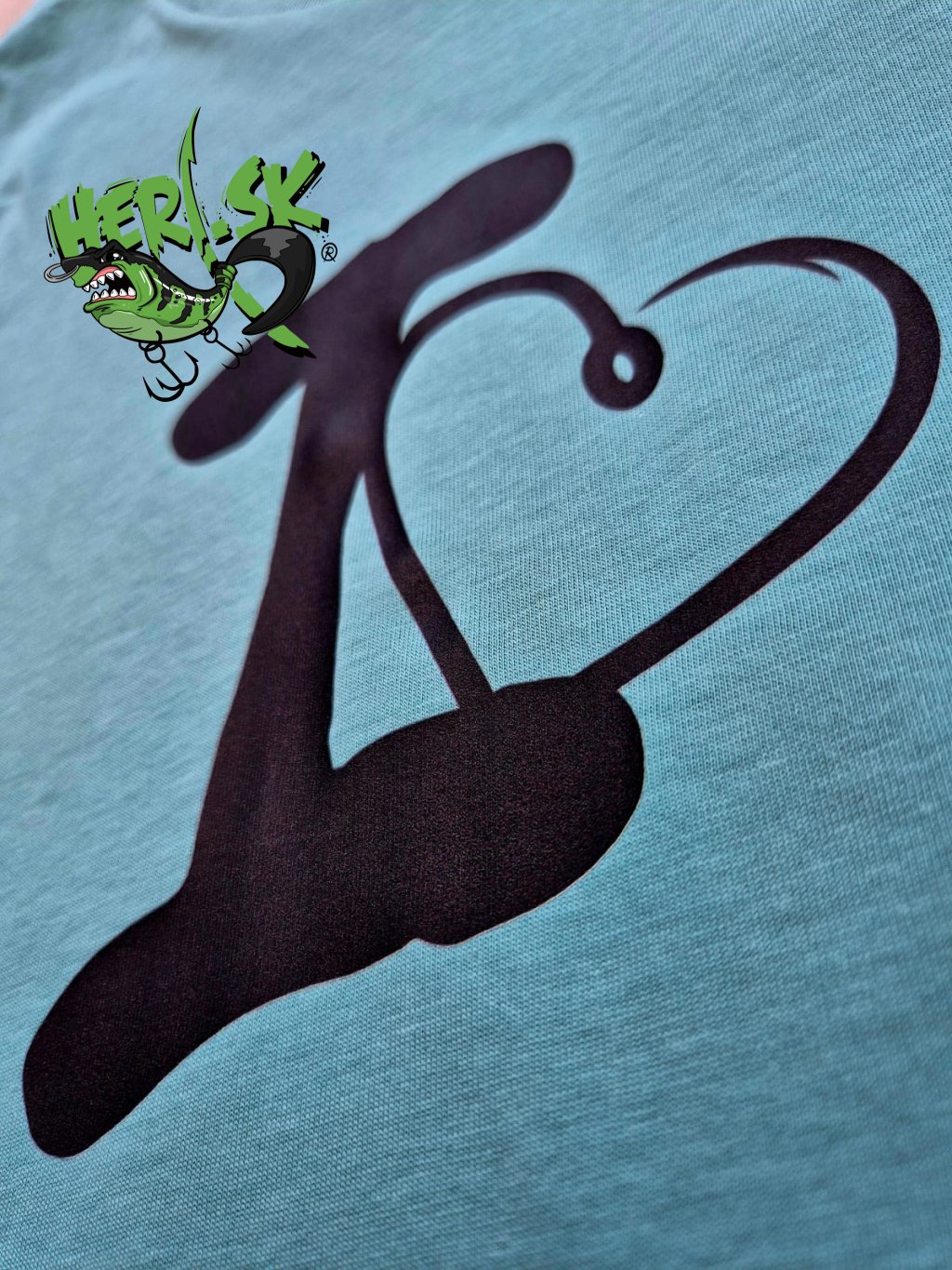 ✔️ Vpredu nápis I ❤️ – srdce z rybárskeho háčika, ktoré trafí každého horského lovca